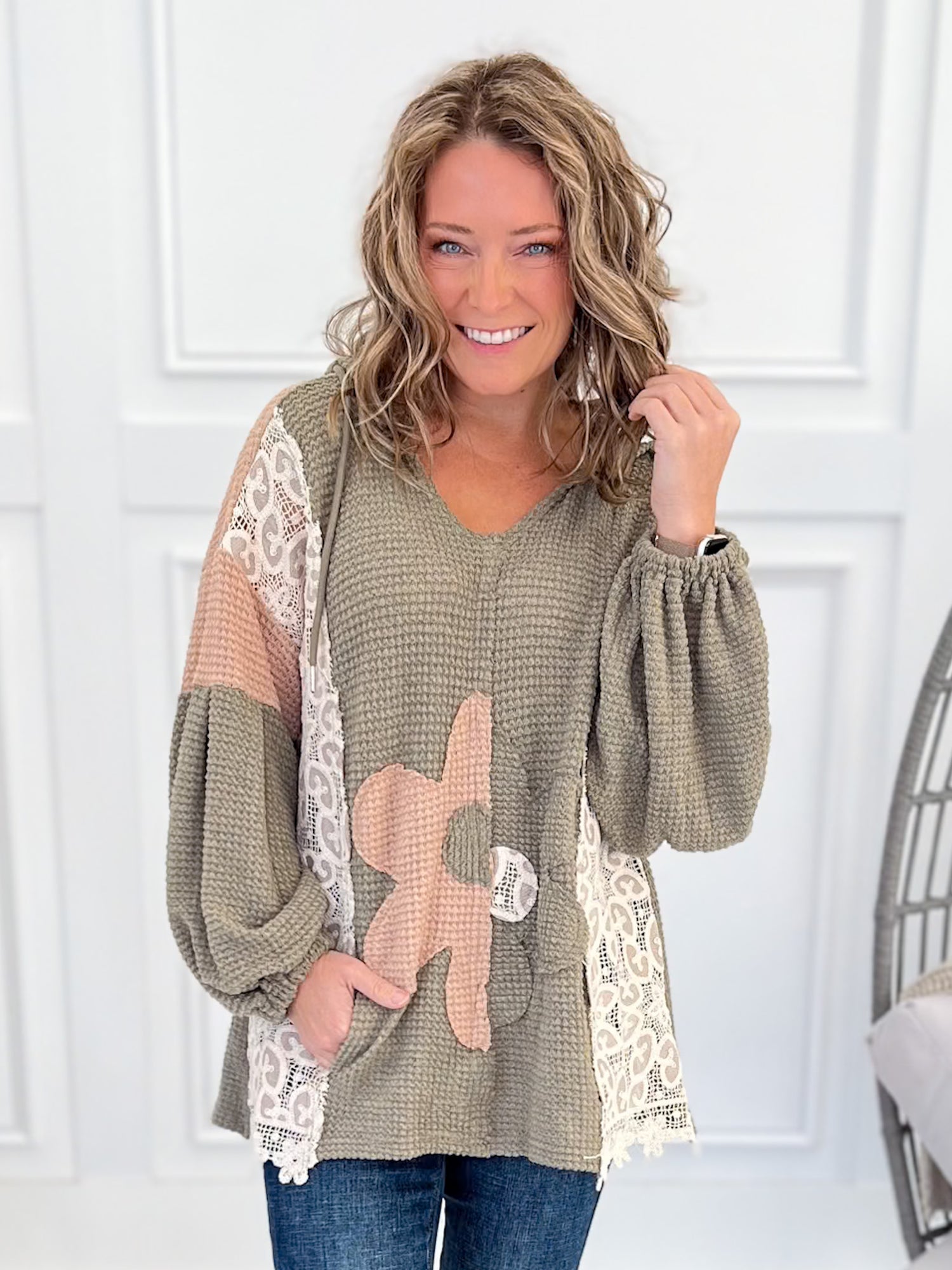 Our best-selling Sure To Bloom Hoodie is back in three gorgeous color combos, each with boho patchwork florals, crochet lace inlays, and the softest airy waffle knit. It’s cute, breathable, and effortless for everyday wear—pair it with jeans, leggings, or flares for year-round boho charm.