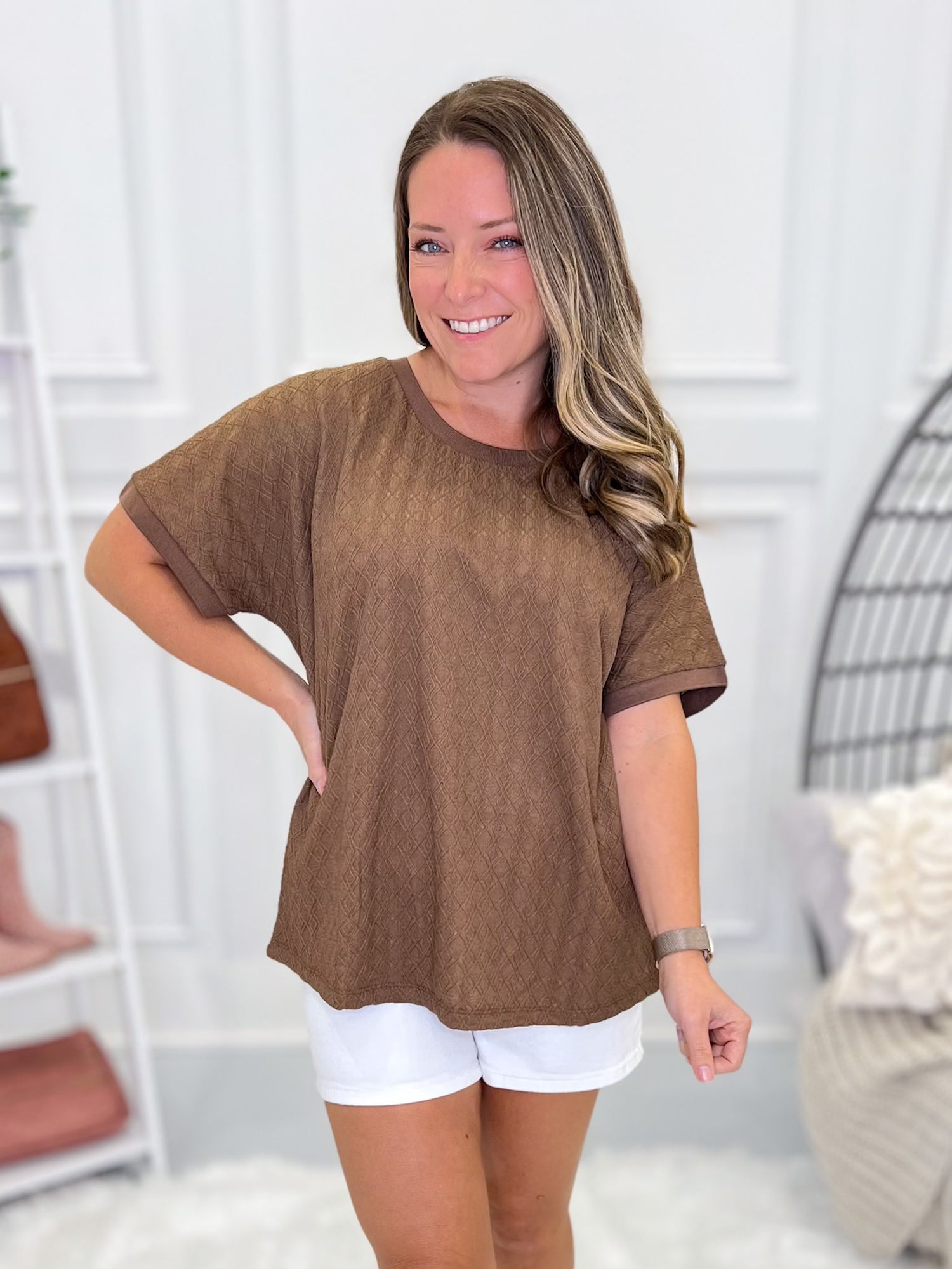 Meet the Sweet As Ever Top – your new go-to for easy, elevated style. This lightweight beauty features a soft diamond texture and just the right amount of stretch for that effortless drape. Whether you're heading out or just chilling, it's got the polished-meets-comfy vibe on lock. Pair it with shorts, denim, or khakis —whatever your mood, it's a match!