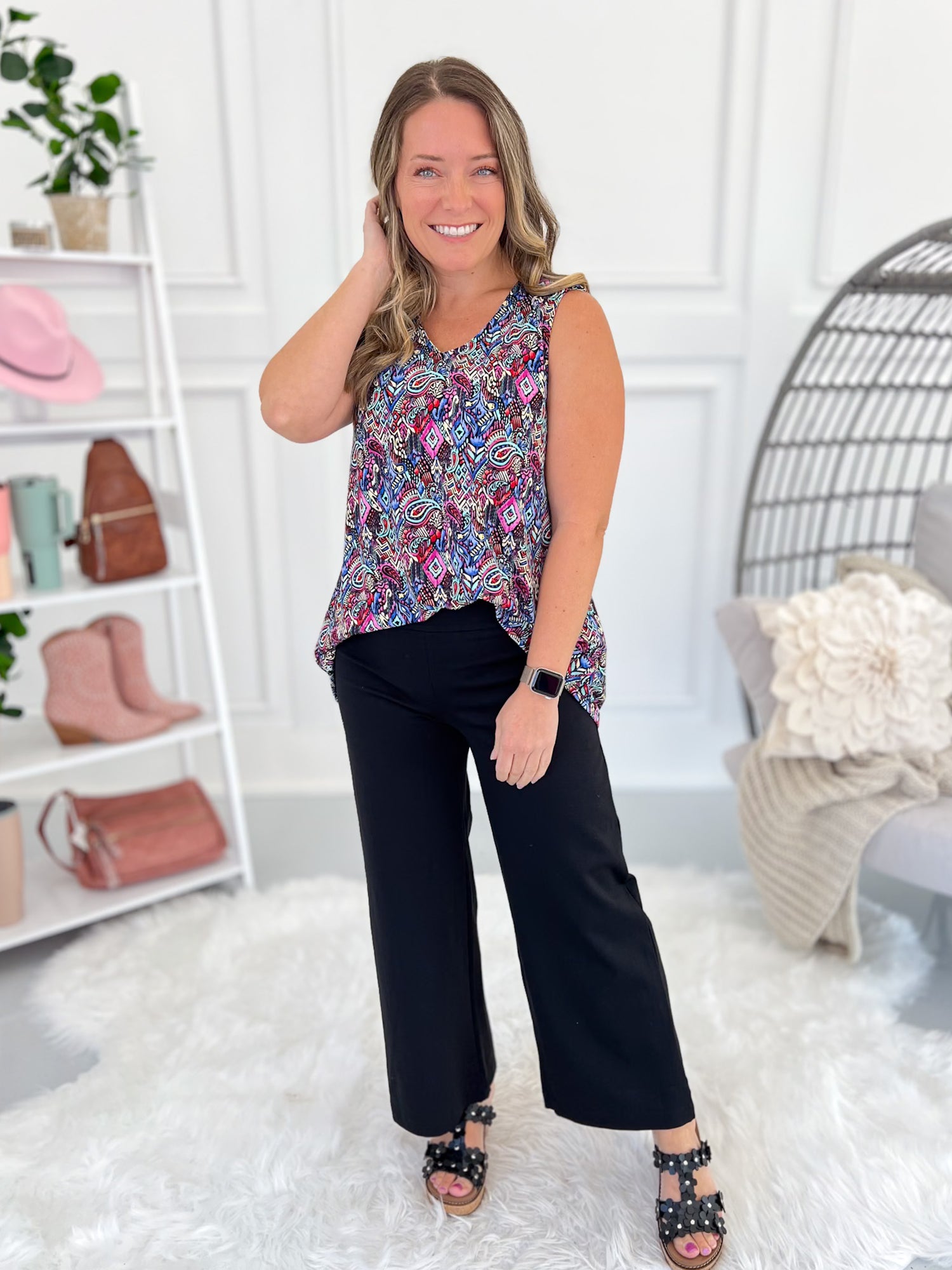 These Dear Scarlett cropped, wide leg pants are called Magic Pants for a reason! They are so easy to mix and match with all of our Dear Scarlett faves, plus they have the perfect, easy fit with a pull on waist and super stretchy fabric. Built in tummy control gives you all the confidence to style these any way you'd like.