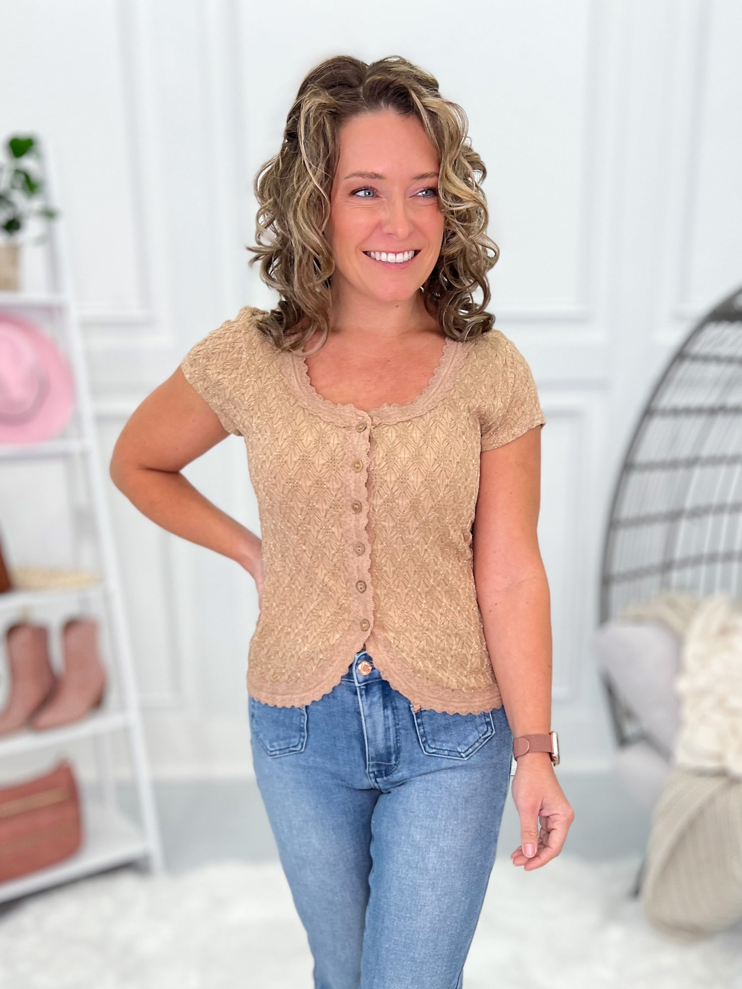 A little sparkle + a whole lot of flattering… These Are The Nights Top is that “easy cute” piece you’ll reach for on repeat. Style it with Judy Blue denim and booties for dinner, or keep it casual with shorts and sneakers—either way, the subtle shimmer makes your outfit feel instantly elevated. Toss on a blazer or denim jacket and you’re out the door (looking like you tried, even if you didn’t).