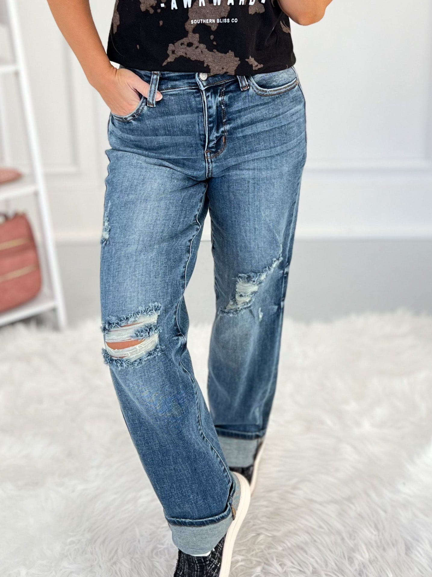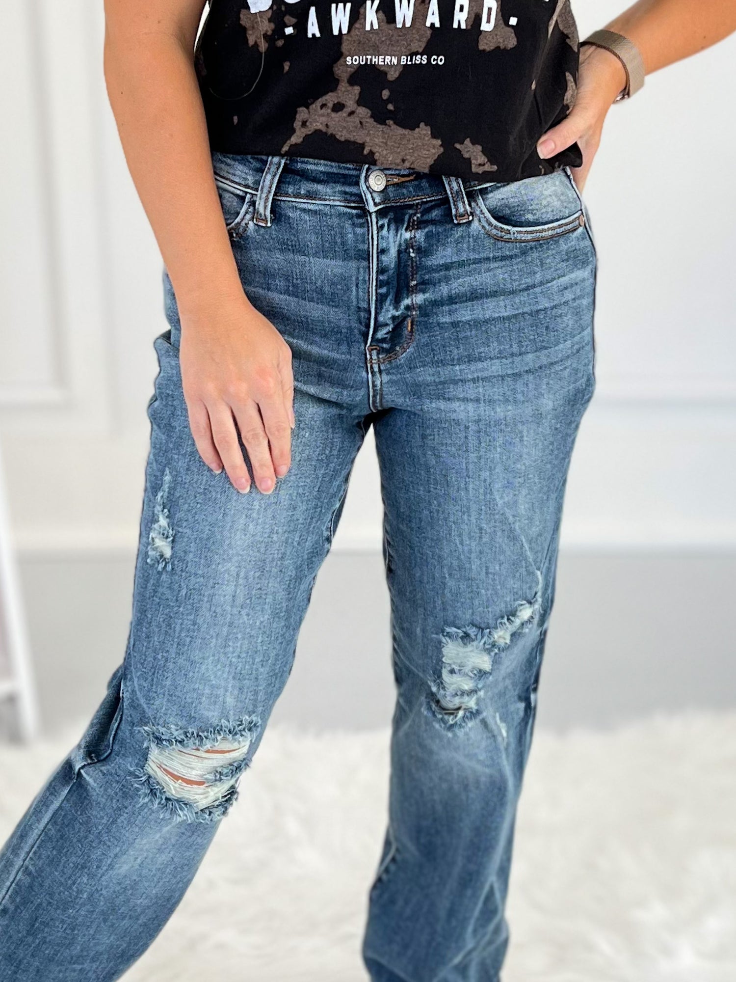 Tinted Love - Judy Blue Distressed Straight Leg Dad Jean