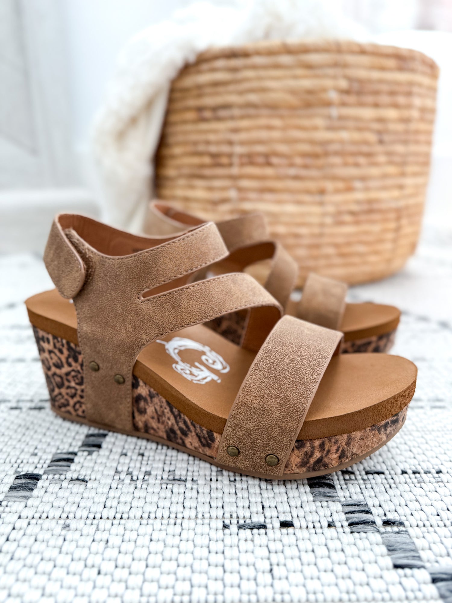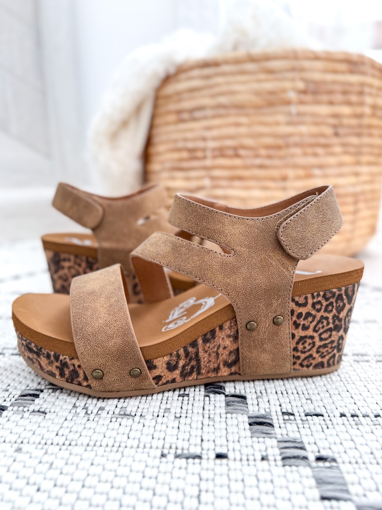 • Leopard Cork Wedge: Stamped print adds a bold, trendy touch