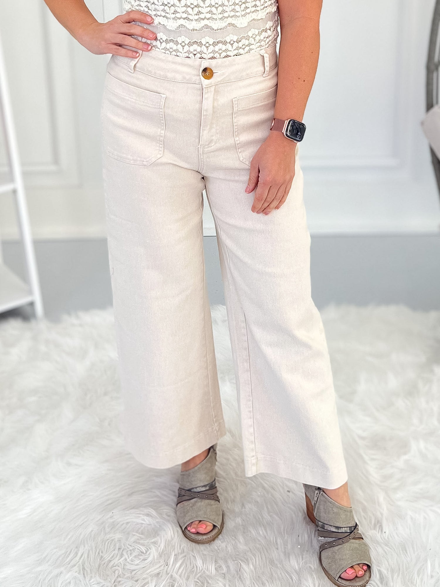 Pair them with lightweight sweaters, blouses, or casual tees for an effortless outfit that works year-round. The cropped wide leg silhouette also looks amazing with wedges, sandals, or ankle boots depending on the season.