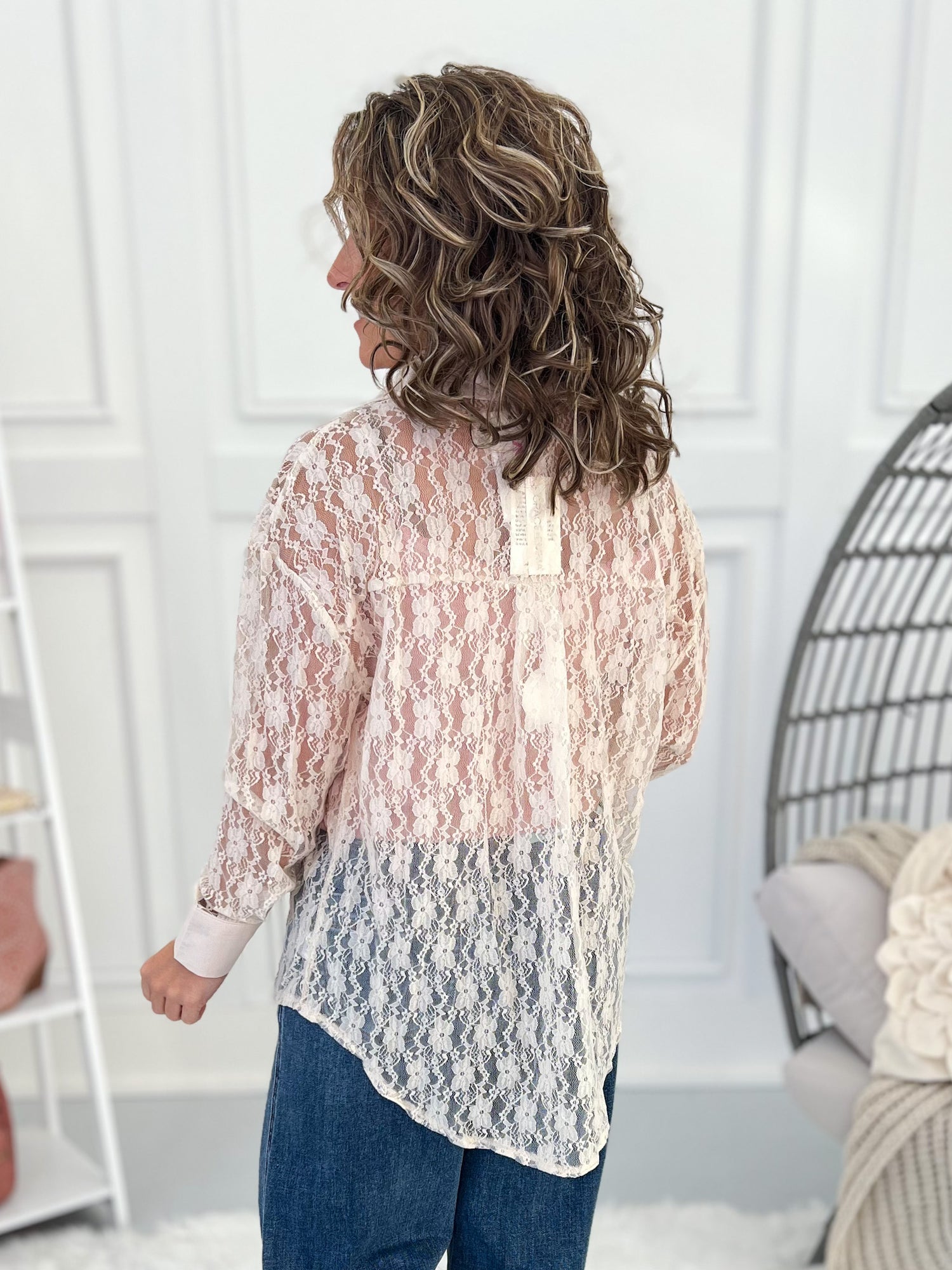 Soft, romantic, and just the right amount of flirty. This lace button-up is one of those pieces that instantly elevates an outfit without feeling fussy. The lightweight lace fabric is breathable and airy, with a delicate look that’s surprisingly comfy and easy to wear. Style it open over a tank, buttoned up for a polished moment, tied at the waist, or half-tucked into your favorite denim — it truly does it all.